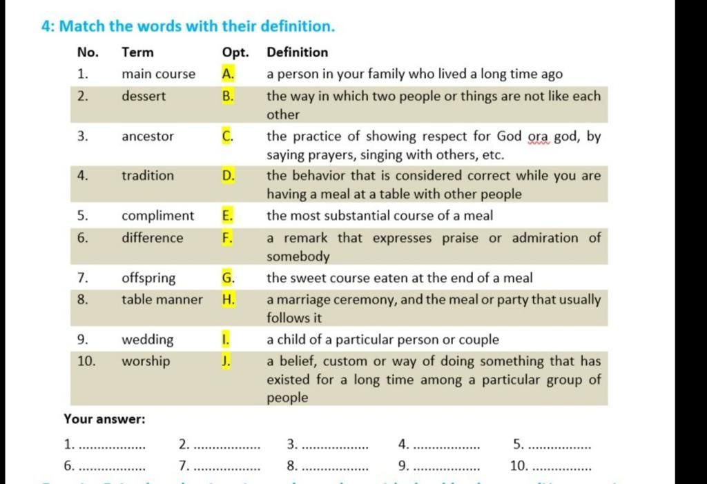 4: Match the words with their definition.