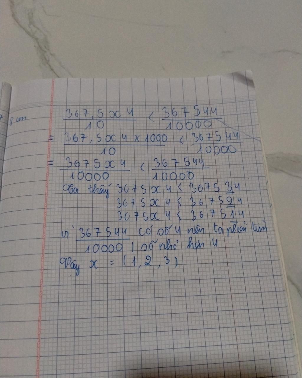 `=>` $\dfrac{367,5x4 \text{x} 1000}{10\text{x}1000}<\dfrac{367544}{10000}$