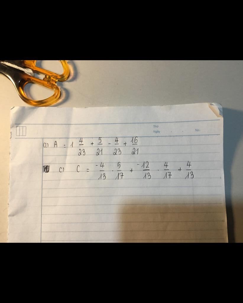 `A = 1 4/23 + 5/21 - 4/23 + 16/21`