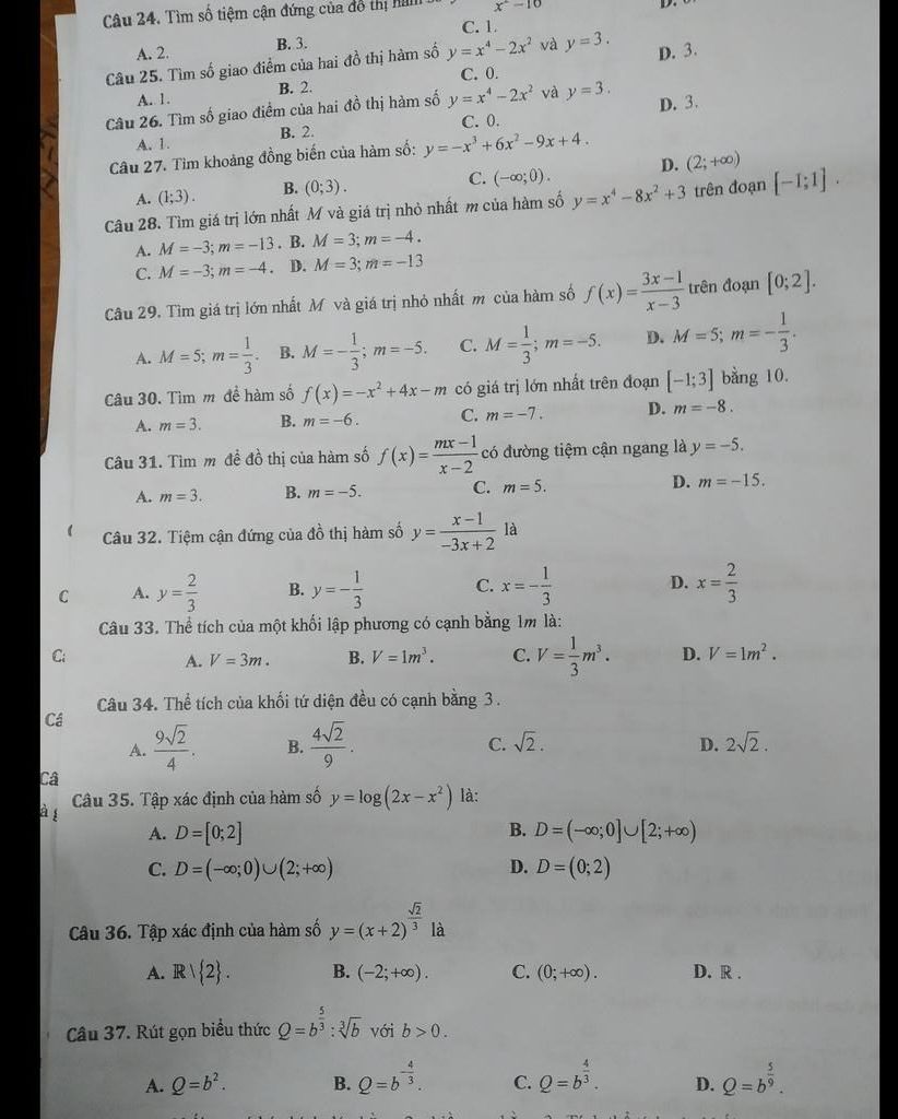 Câu 24. Tìm số tiệm cận đứng của đô thị