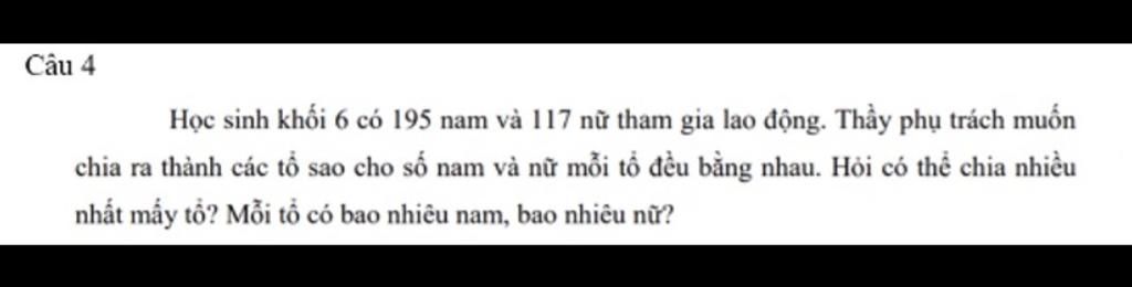 Số tổ chia được nhiều nhất là ƯCLN(195; 117)