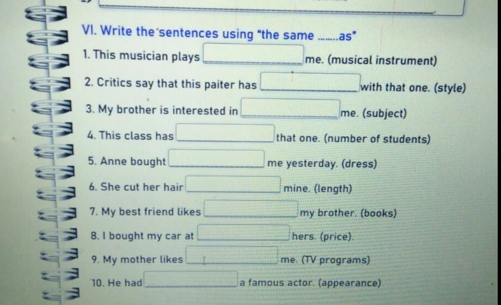 VI. Write the'sentences using "the same ..as
