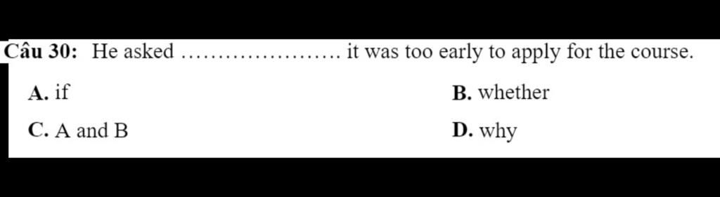 Chọn `C` : if=whether