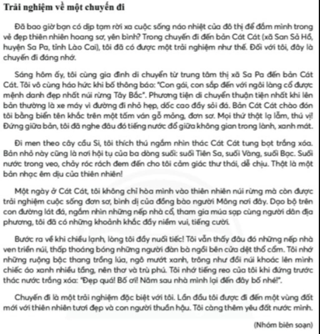 Đúng năm giờ sáng, xe xuất phát từ Hà Nội. Khoảng đến gần trưa thì xe đã đến nơi. Em cùng các bạn nhỏ cùng tuổi mình cảm thấy vô cùng thích thú vì sau một hành trình dài cuối cùng cũng đến Sầm Sơn. Sau khi đến khách sạn nhận phòng và cất đồ đạc. Mọi người cùng nhau đi ăn trưa, rồi nghỉ ngơi.