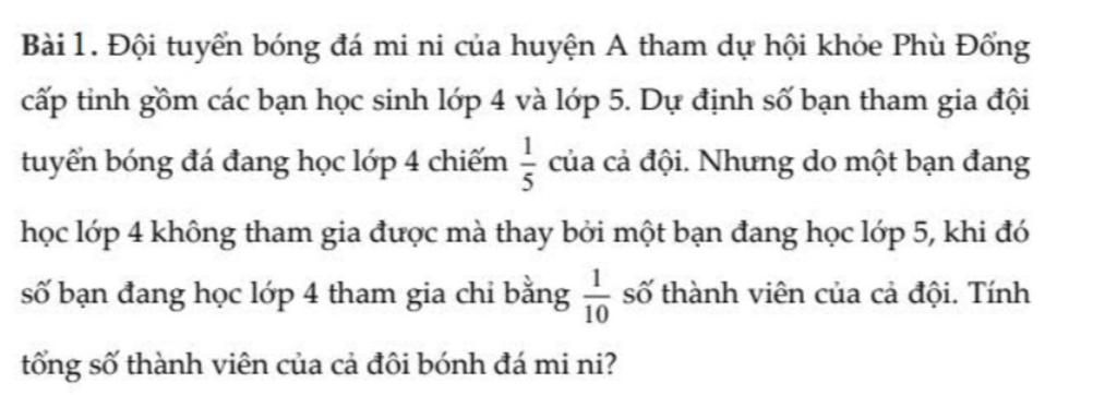 1/5 - 1/10 = 1/10 ( đội bóng mini )