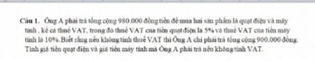 Vậy giá tiền quạt điện ông A phải trả nếu không tính VAT là $200000$ đồng