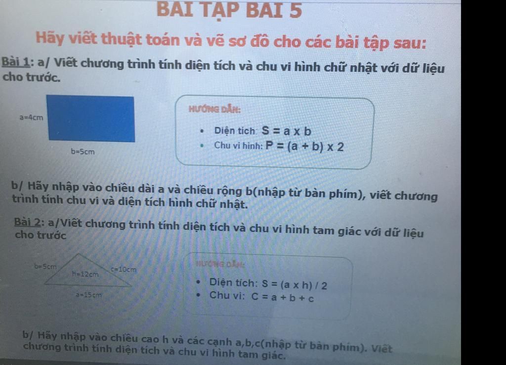 print("CHƯƠNG TRÌNH XÁC ĐỊNH TAM GIÁC VÀ TÍNH CHU VI, DIỆN TÍCH")