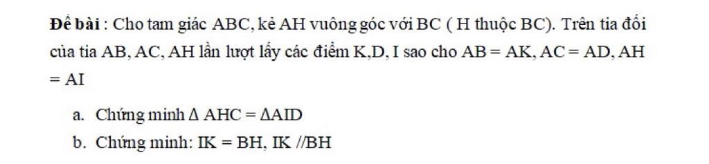 a.Xét $\Delta AID, \Delta AHC$ có: