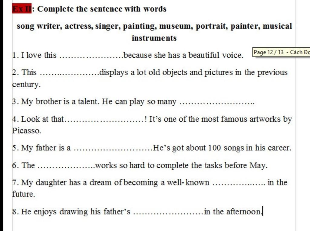 .because she has a beautiful voice. Page 12/13 - Cách Đc
