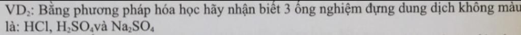 B2: Còn lại $HCl$ và $H_{2}SO_{4}$ thì cho vào mỗi ống nghiệm 1 giọt dung dịch $BaCl_{2}$. Quan sát 2 ống nghiệm. Nếu ống nghiệm nào có xảy ra phản ứng tạo ra kết tủa trắng thì ống nghiệm đó chứa $H_{2}SO_{4}$. Còn lại ống nghiệm bên kia không có phản ứng hay hiện tượng gì thì đó là $HCl$.