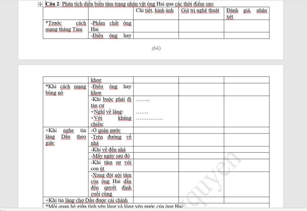 E Câu 2: Phân tích diễn biến tâm trạng nhân vật ông Hai qua các thời điểm sau: