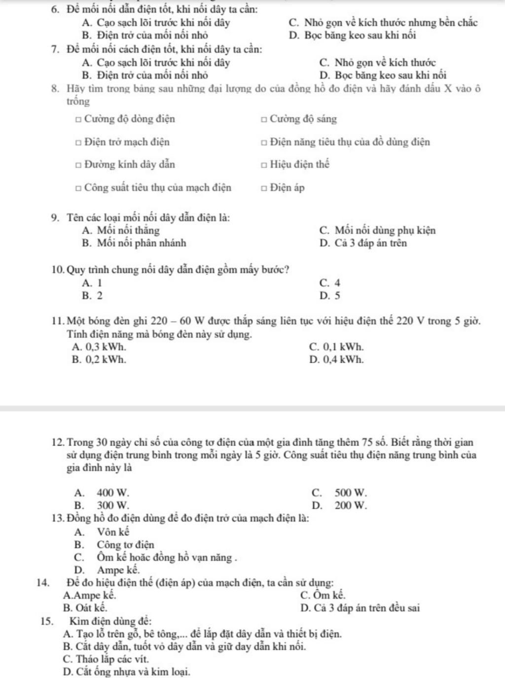 7. Để mối nối cách điện tốt, khi nối dây ta cần: