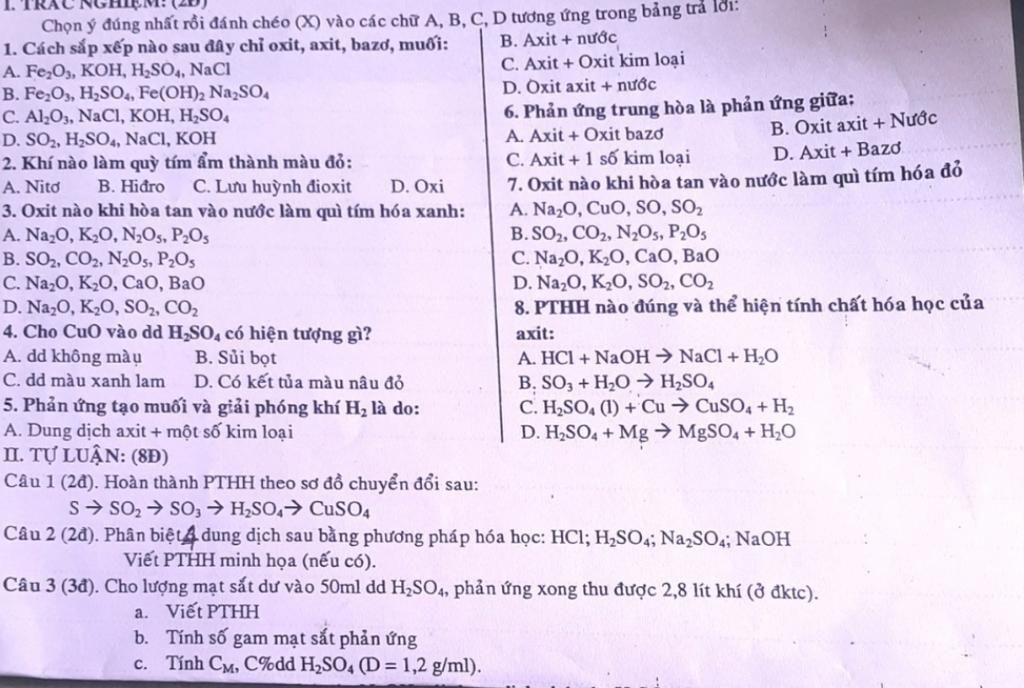 +quỳ tím hóa đỏ là HCl và H2SO4(1)
