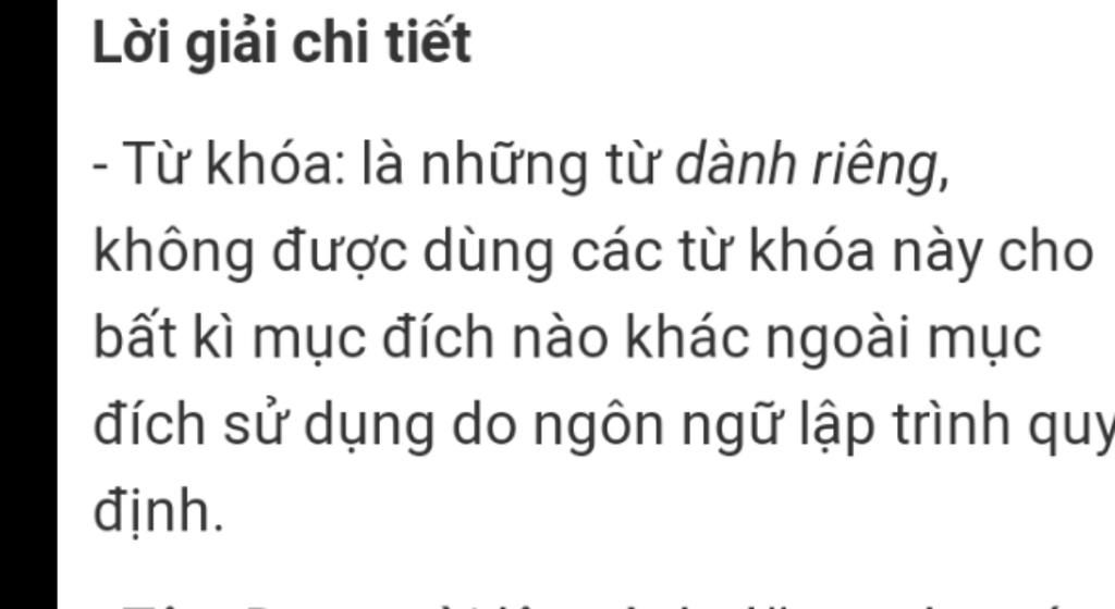 - Từ khóa là những từ dành riêng, không dùng các từ này cho mục đích nào khác ngoài mục đích sử dụng do ngôn ngữ lập trình quy định.