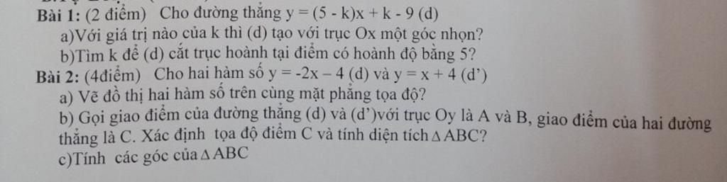 a)Với giá trị nào của k thì (d) tạo với trục Ox một góc nhon?