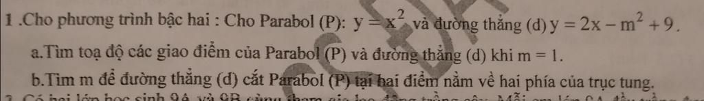 b) Để giao điểm của chúng nằm về 2 phía trục tung thì hoành độ giao điểm trái dấu