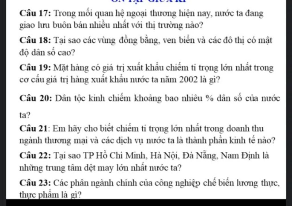 +Là những đô thị lớn, đông dân nên có thị trường tiêu thụ rộng lớn, nguồn lao động dồi dào.