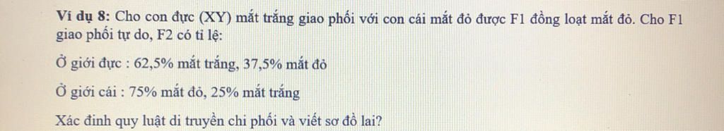 Do TT màu mắt phân bố không đều ở 2 giới --> 1gen nằm trên NST giới tính X, 1 gen nằm trên NST thường