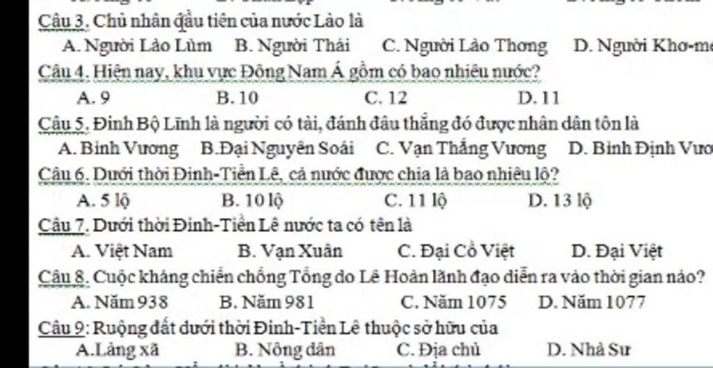 7.Dưới thời Đinh-Tiền lê nước ta tên là Đại Cồ Việt