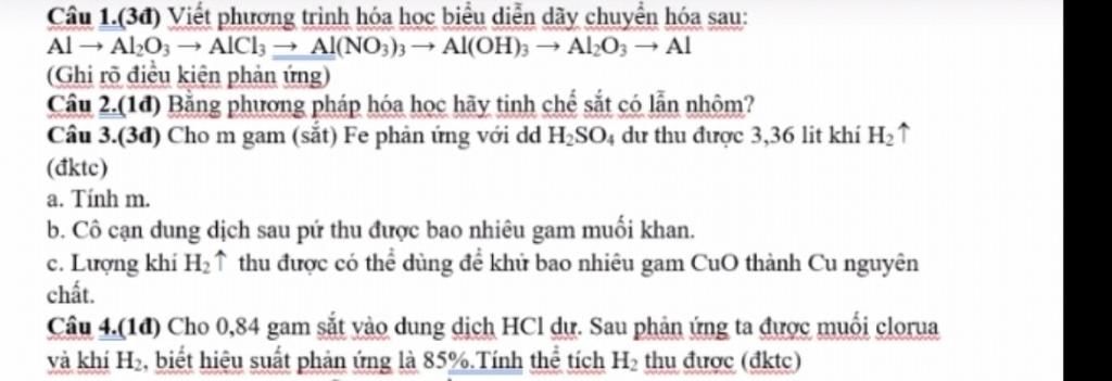 + Cách 2: Bột sắt kim loại có lẫn tạp chất là nhôm. Phương pháp làm sạch sắt là hòa tan trong dung dịch NaOH dư, Al sẽ tan và còn lại là Fe nguyên chất