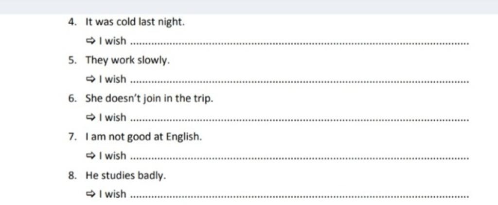 `→` Động từ to be: S + wish/ wishes + S + was/ were + (not) ...