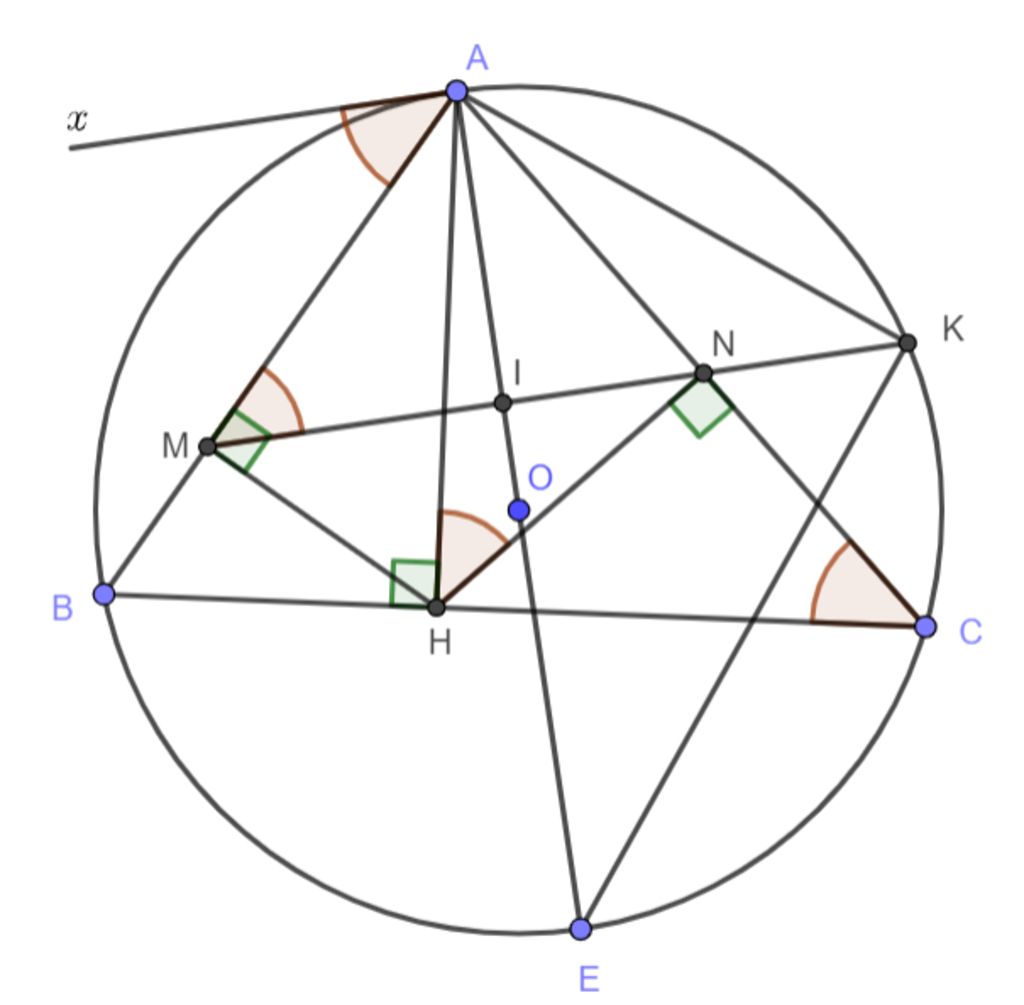 $\Rightarrow AMHN$ nội tiếp đường tròn đường kính $(AH)$