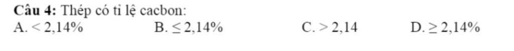 Thép có tỉ lệ cacbon là `≤ 2,14%`