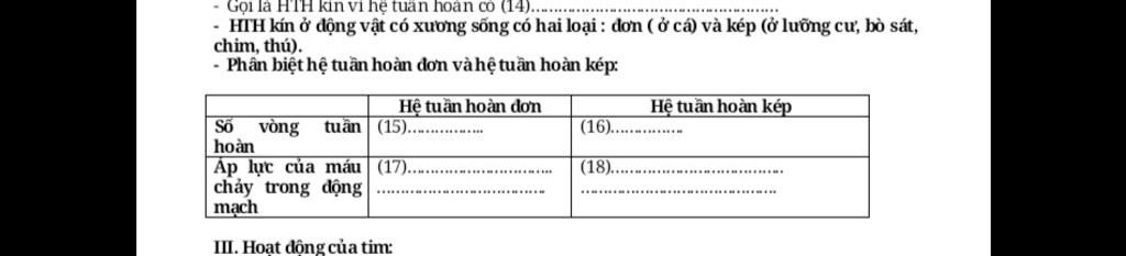 Gọi là HTH kin vi hệ tuân hoàn có (14)...
