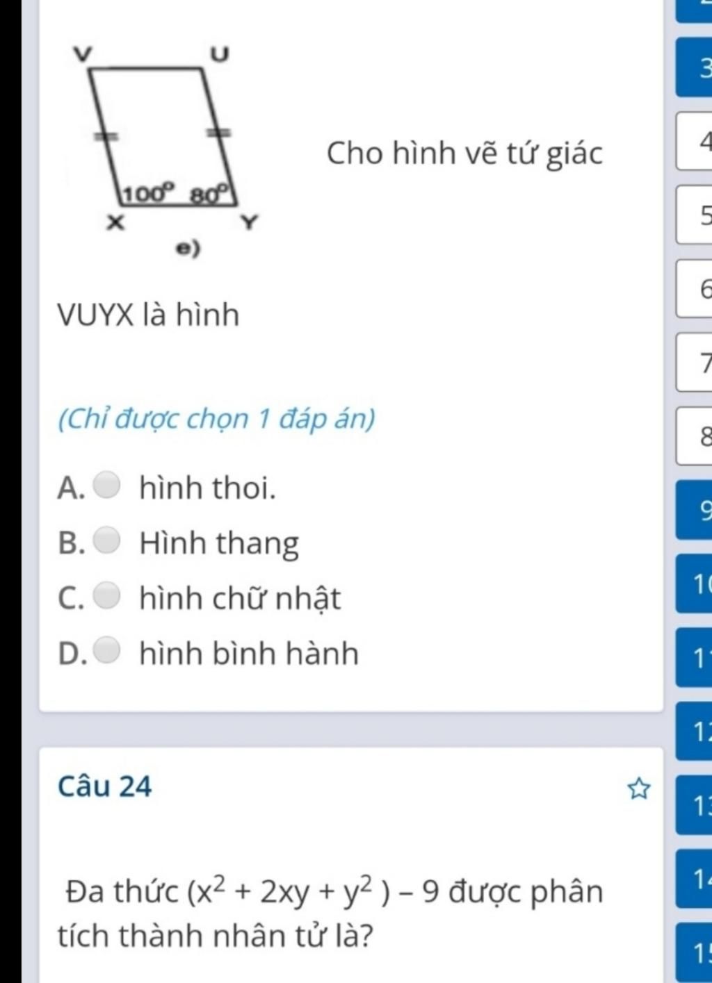 Nhìn hình thì là hình bình hành nhưng nó không đủ điều kiện là hình bình hành