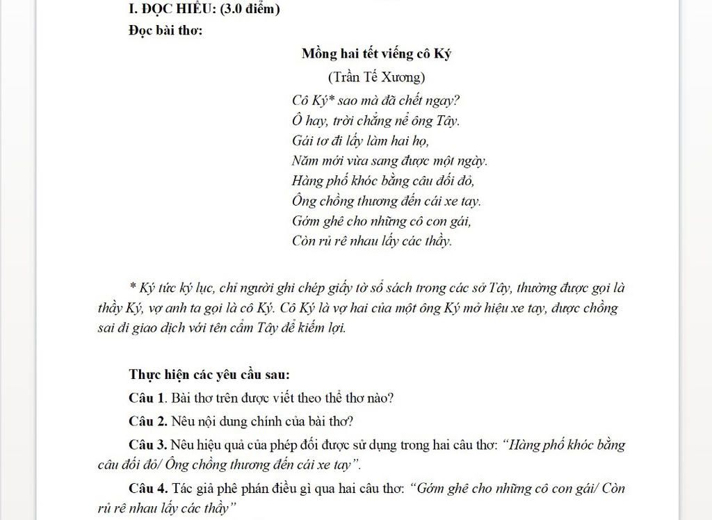 2. Thể hiện nỗi đau buồn về cô Ký nhưng mà lại qua tiếng cười cợt.