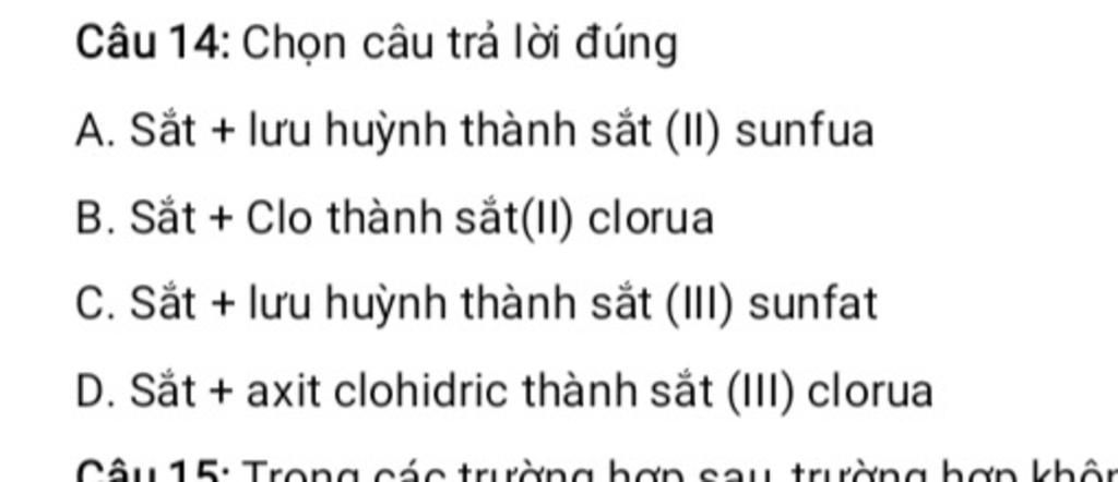Câu 14: Chọn câu trả lời đúng