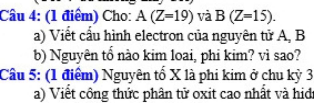 +) CH e : 1s2 2s2 2p6 3s2 3p3 => phi kim vì có 5 e ở lớp ngoài cùng