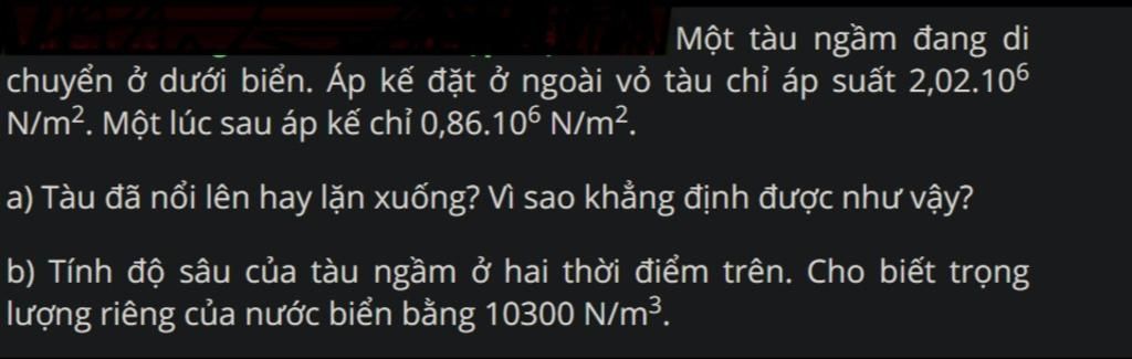 $\text{a) Tàu đã nổi lên hay lặn xuống ? Vì sao }$