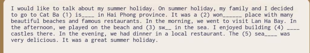 5. seafood - Delicous: ngon, miêu tả đồ ăn nên điền seafood: hải sản