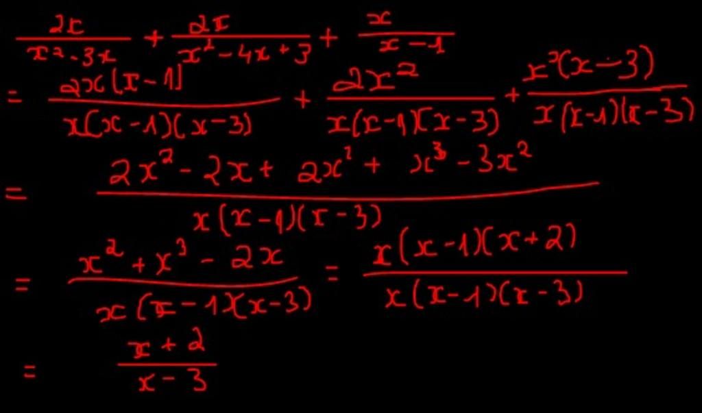 $\\$ `= ( 2x ) / [ x ( x - 3 ) ] + ( 2x ) / [ ( x - 1 ) ( x - 3 ) ] + x / ( x - 1 )`