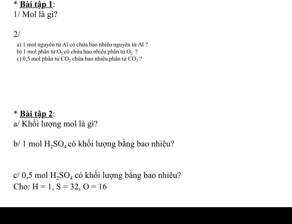 b. 1 mol $H_2SO_4$ có khối lượng :