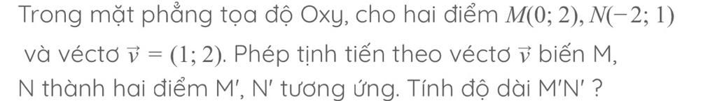 Vì phép tịnh tiến theo $\vec{v}$ biến $M, N$ thành $M', N'$ tương ứng