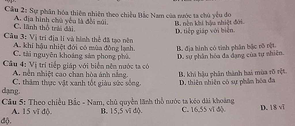 -- Vị trí địa lí và hình thể nước ta đã tạo nên sự phân hoá đa dạng của tự nhiên.