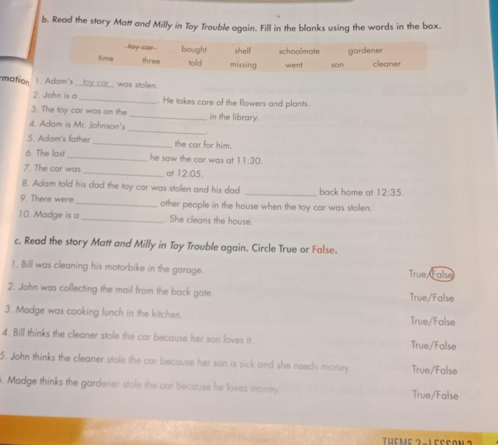 b. Read the story Matt and Milly in Toy Trouble gagin, Fill in the blanks using the words in the box.