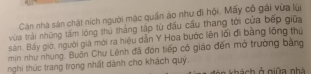 `-` Vị ngữ: ra hiệu cho Y Hoa bước lên lối đi bằng lông thú mịn như nhung.