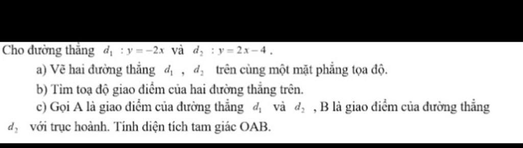 Cho đường thẳng d, : y =-2x và d : y= 2x– 4.