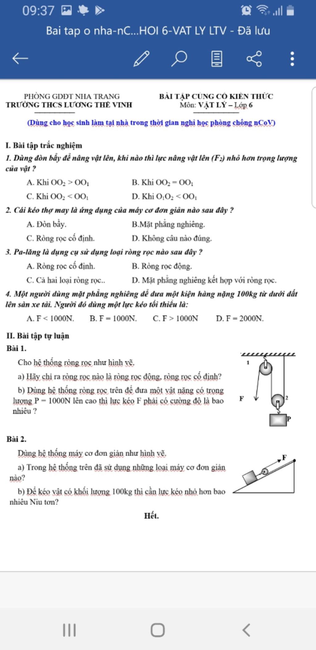 Ròng rọc 1 là ròng rọc cố định.ròng rọc 2 là ròng rọc động.