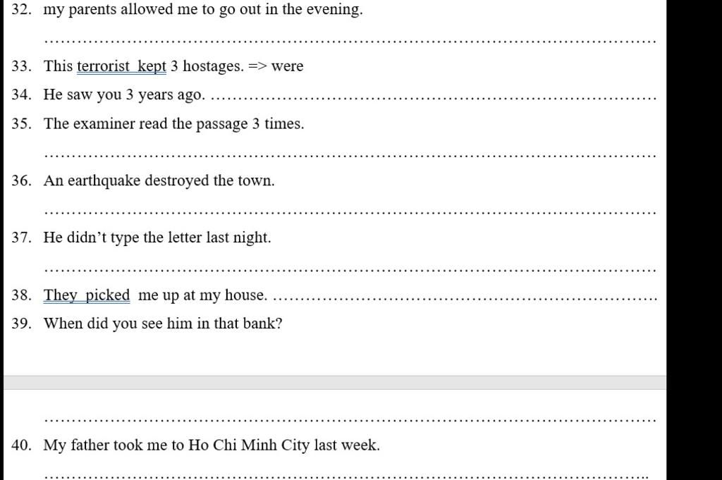 `40.`I was taken to Ho Chi Minh City by my father last week.