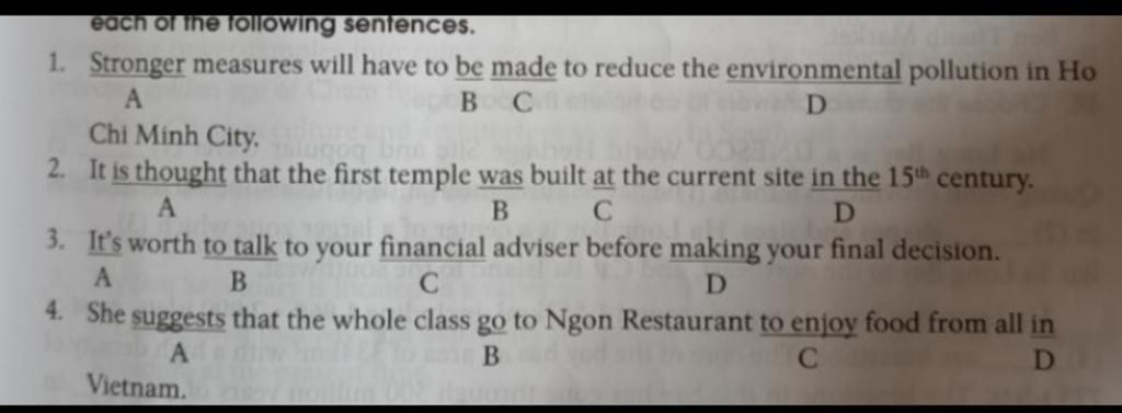 each of the following senfences.