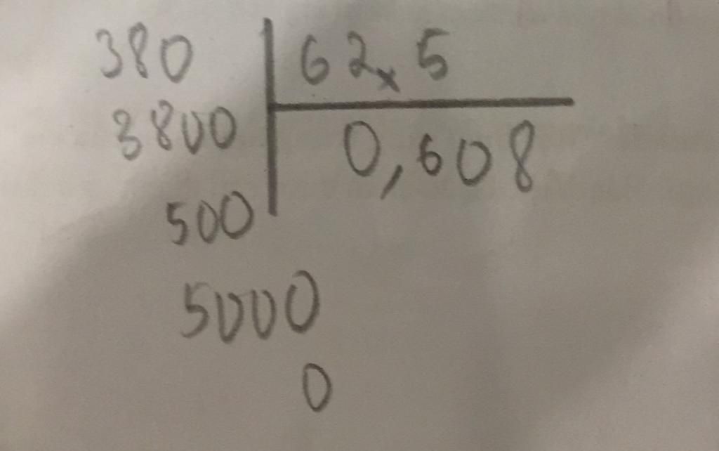 380 |__625____ thêm số 0 vào só 38 xong bn bỏ dấu phẩy ở 62,5 là 625