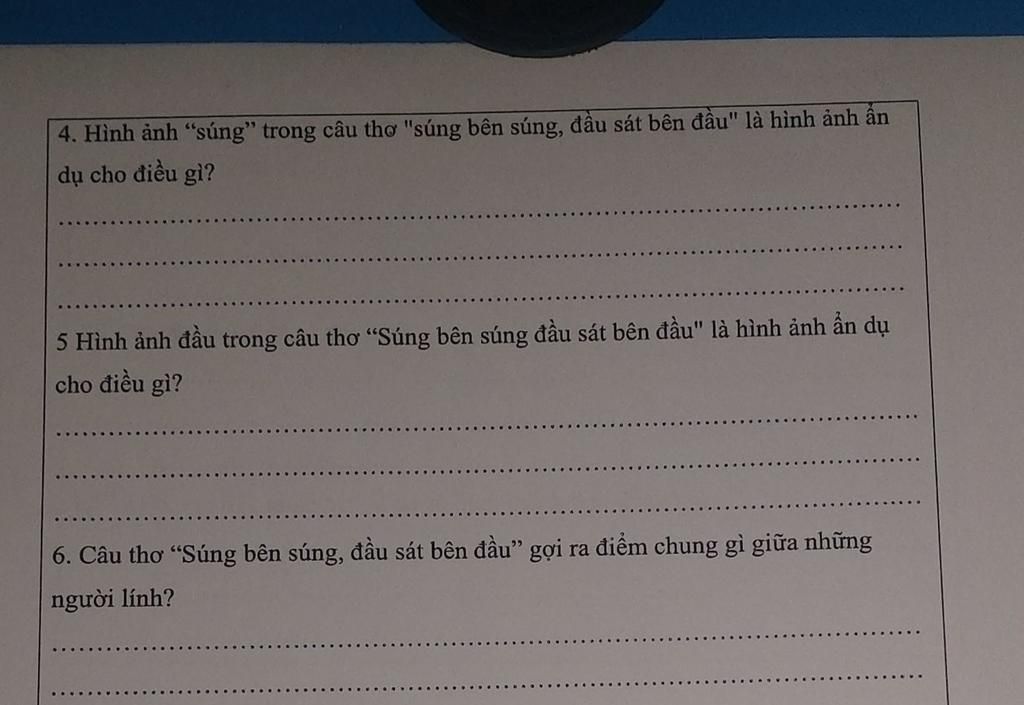 4. ẩn dụ "súng đầu" là tượng trưng cho chiến tranh và lí tưởng sống