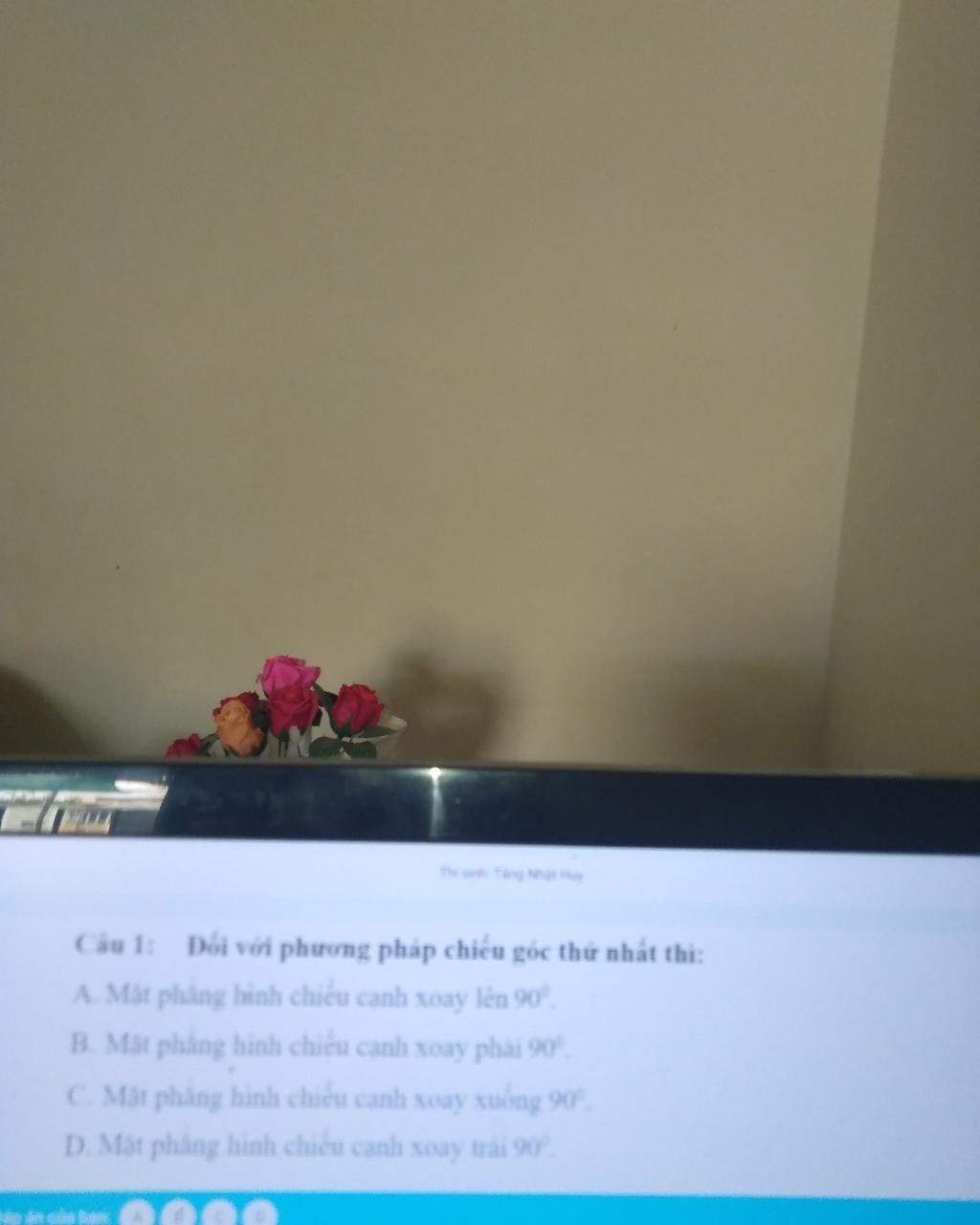 A. Mat phing hinh chiếu canh xoay lên 90°.