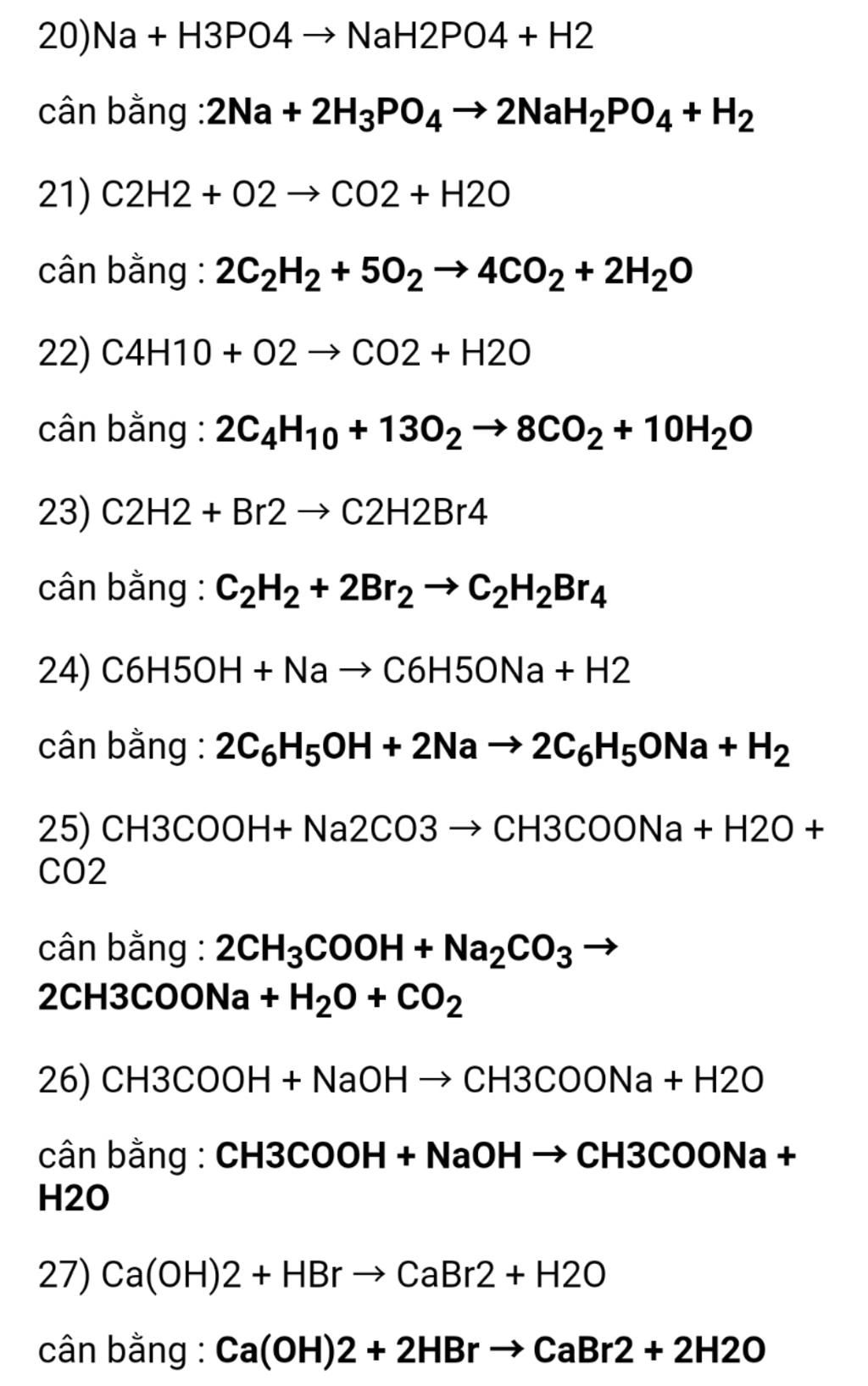 25) CH3COOH+ Na2CO3 → CH3COONa + H2O + CO2