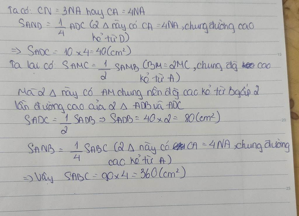 Mà SANB = 1/4SABC (2 tam giác này có CA=4NA, chung đường cao kẻ từ A).