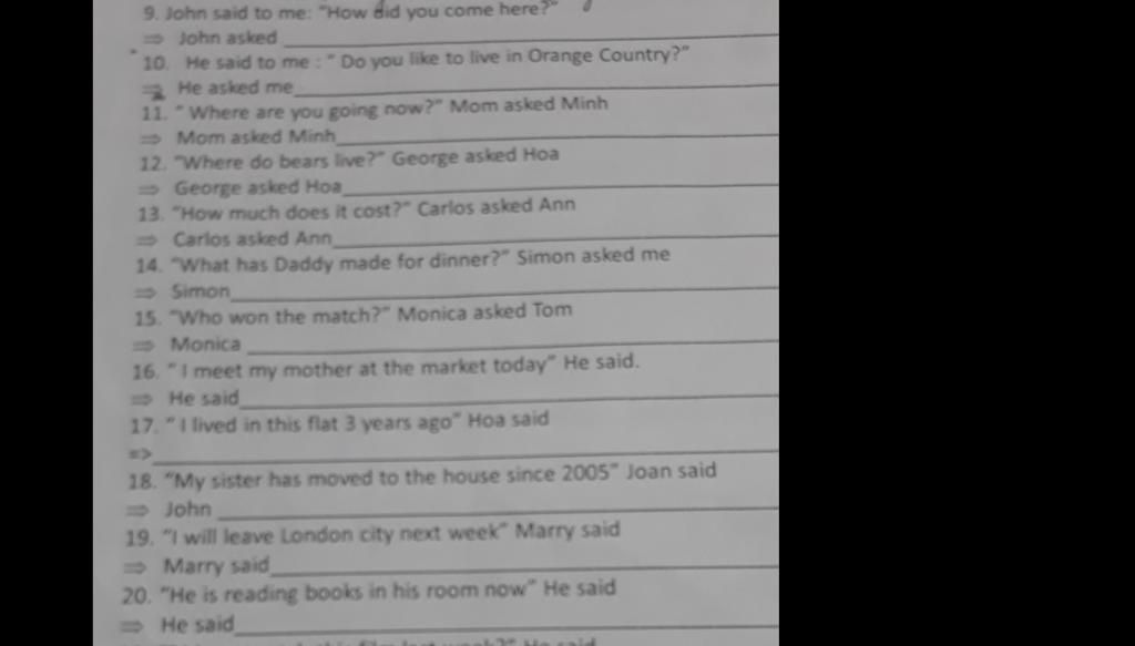 `-` Wh-questions : S + asked + sb + what/where....+ S + V(lùi thì).
